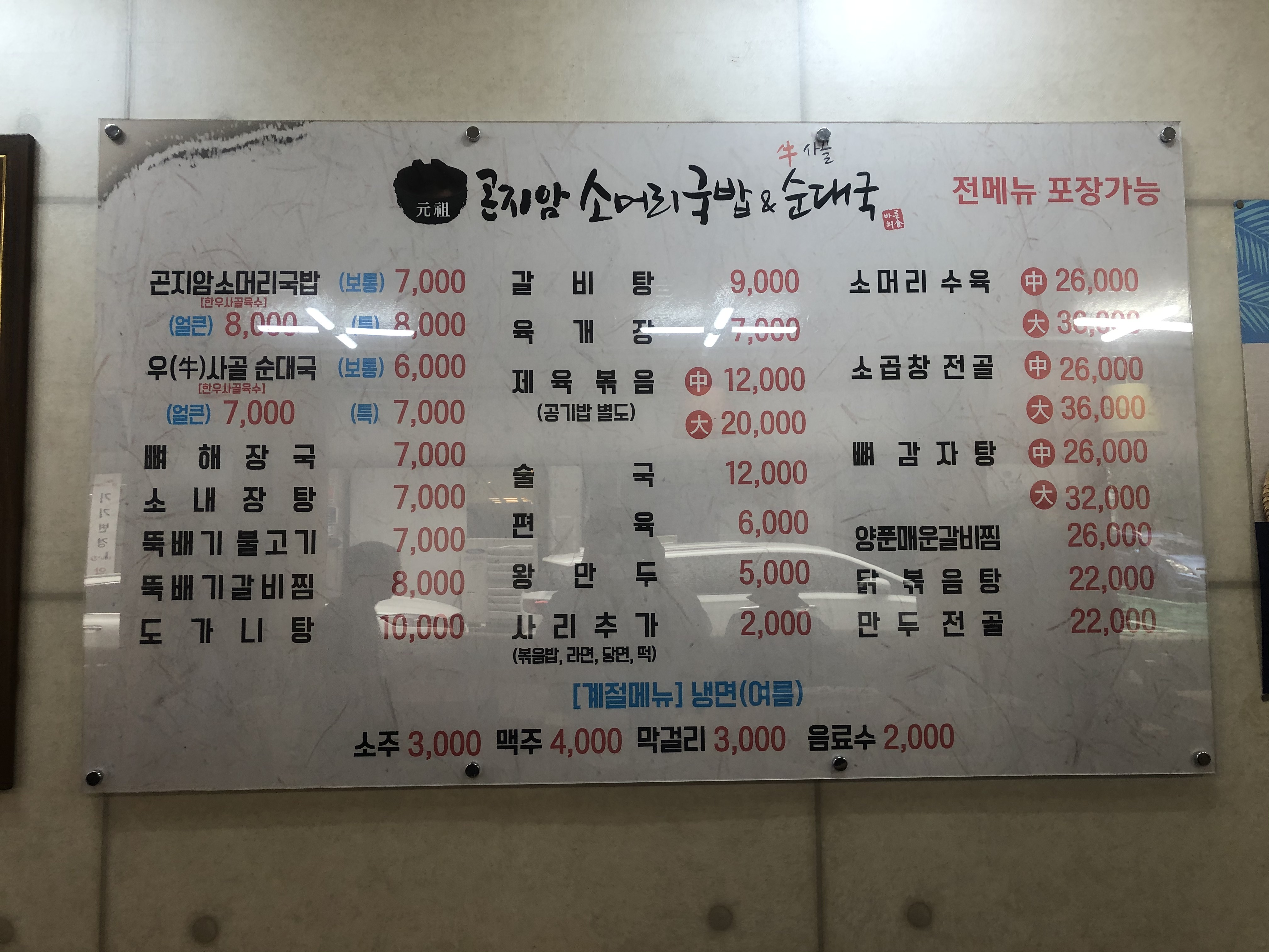 소머리국밥 전문점인 곤지암소머리국밥순대국을
