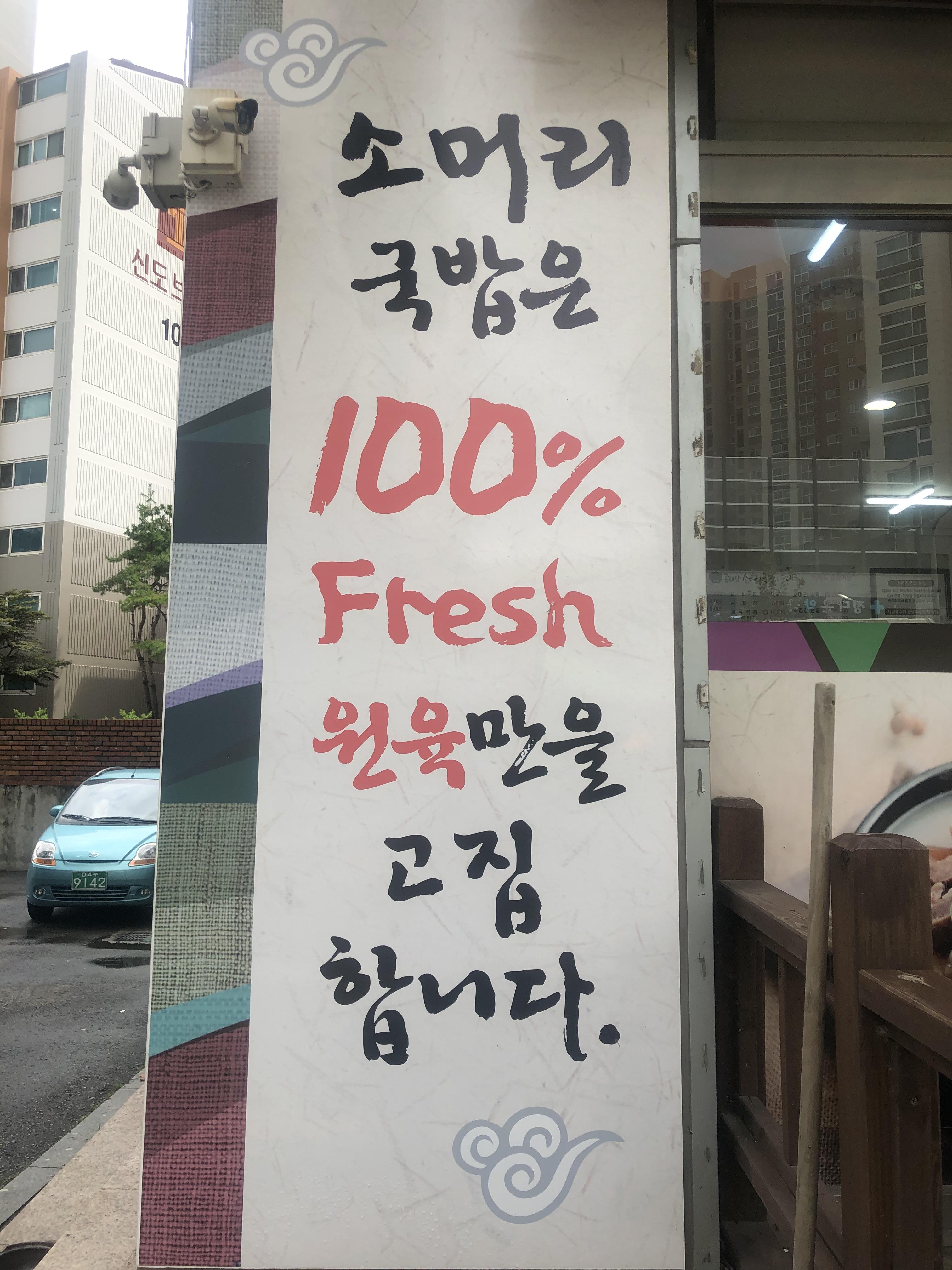 소머리국밥은 100% Fresh한 원육만을 고집한다고 적혀있네요.