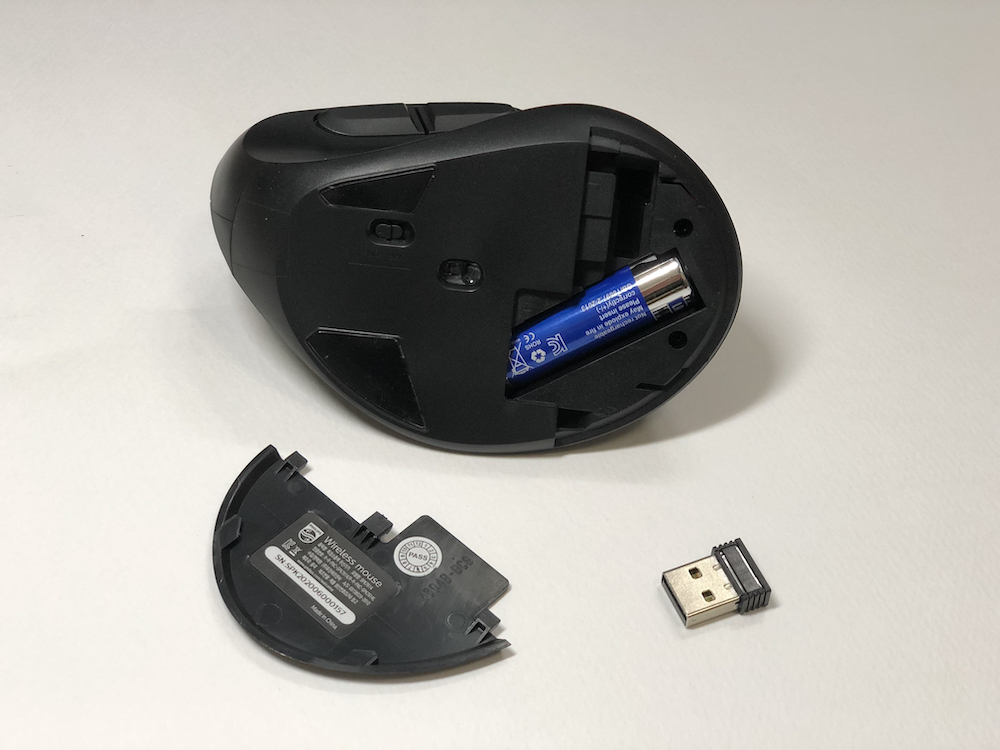 밑부분에 건전지를 넣을 수 있고 USB 수신기를 보관할 수 있는 공간이 존재합니다.