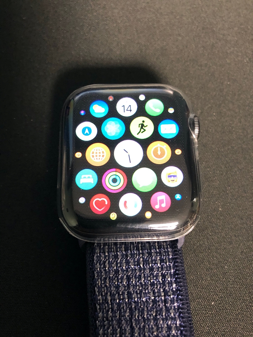 애플워치 보호 케이스가 껴져 있는 모습입니다.